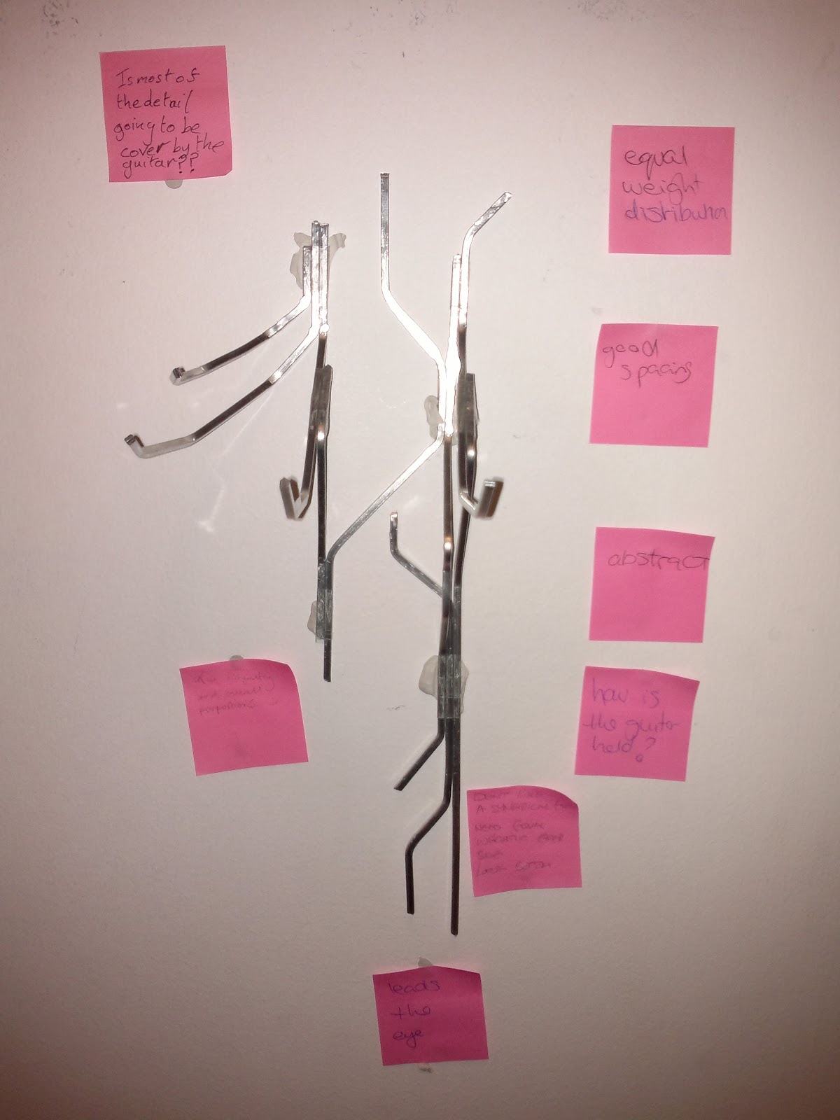 The Microphone stand is my first major product i have completed inspired by the shape of the bar and the style i have been developing since my second year of collage. I have started designing a guitar stand which i have a third scale marquette for and guitar hooks of which i have just started small scale marquette making and drawing for. I hope you enjoy these pictures of my work, i will be posting regular updates of all my work with pictures and videos.